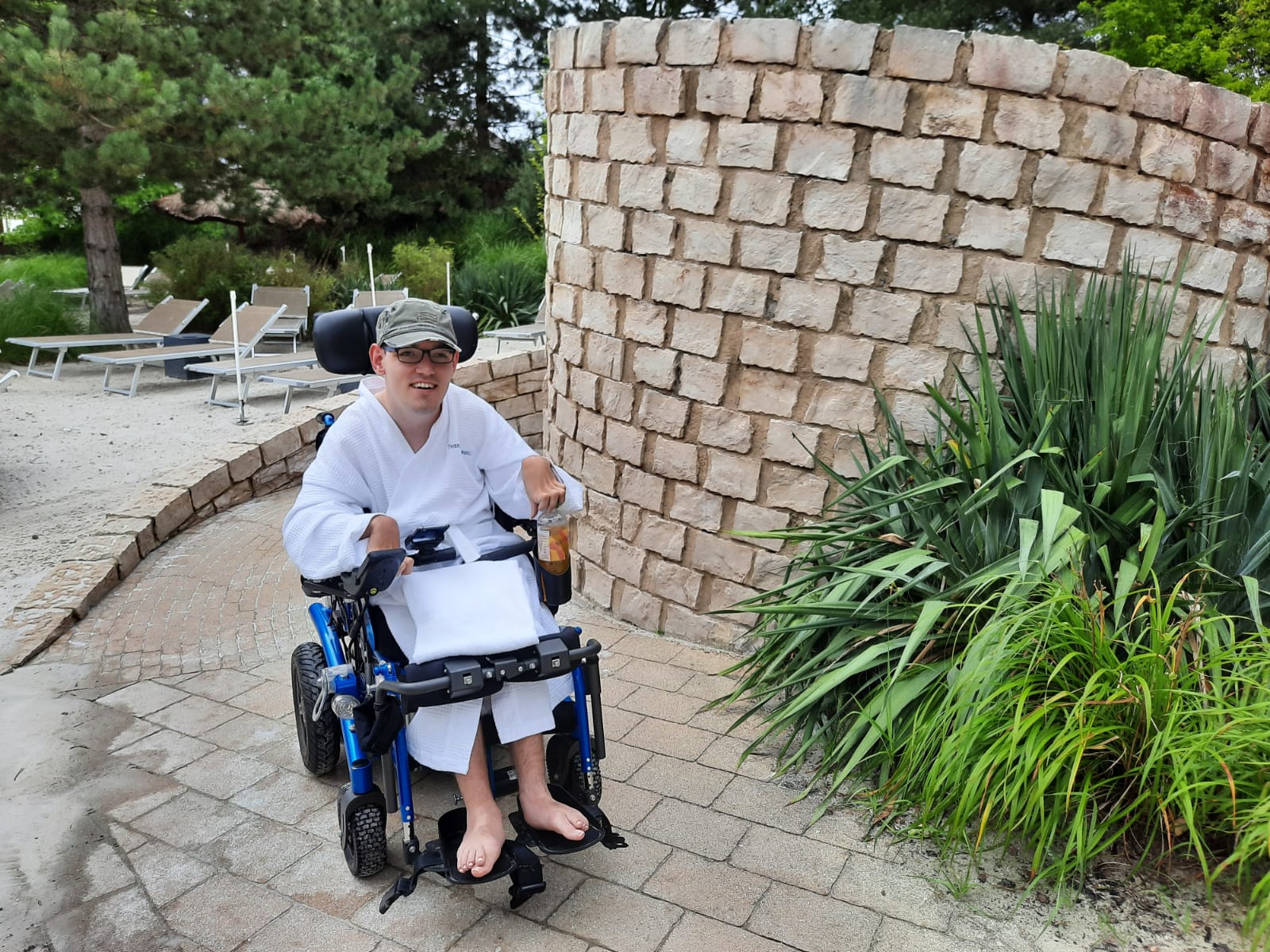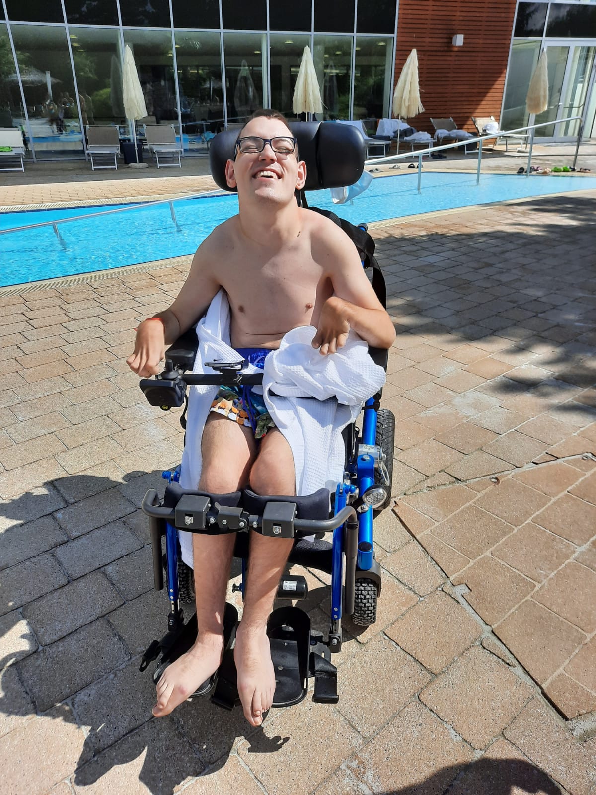 Es gab unter anderem frisches Gebäck, Obst, Wurst, Käse, Würstel, Eier und Speck und noch viel mehr. Wir aßen immer genug, sodass wir kein Mittag essen brauchten. Danach gingen wir gleich wieder schwimmen. Um den Rollstuhlfahrern den Einstieg ins Wasser zu erleichtern, gibt es einen Badelift, wo man sich drauf setzt und dann mithilfe von Druckluft ins Wasser gehoben wird. Weiters sind genügend gerechte Toiletten im Badebereich vorhanden. Selbstverständlich gibt es auch fahrbare Duschstühle um das Duschen für Rollstuhlfahrer zu erleichtern.